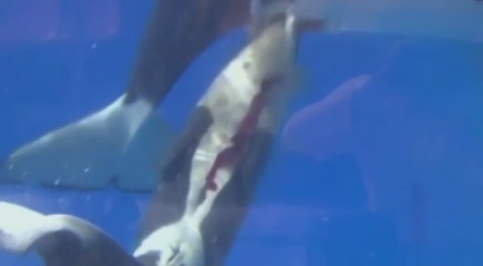 Kasatka and Takara (giving birth to Kohana)
